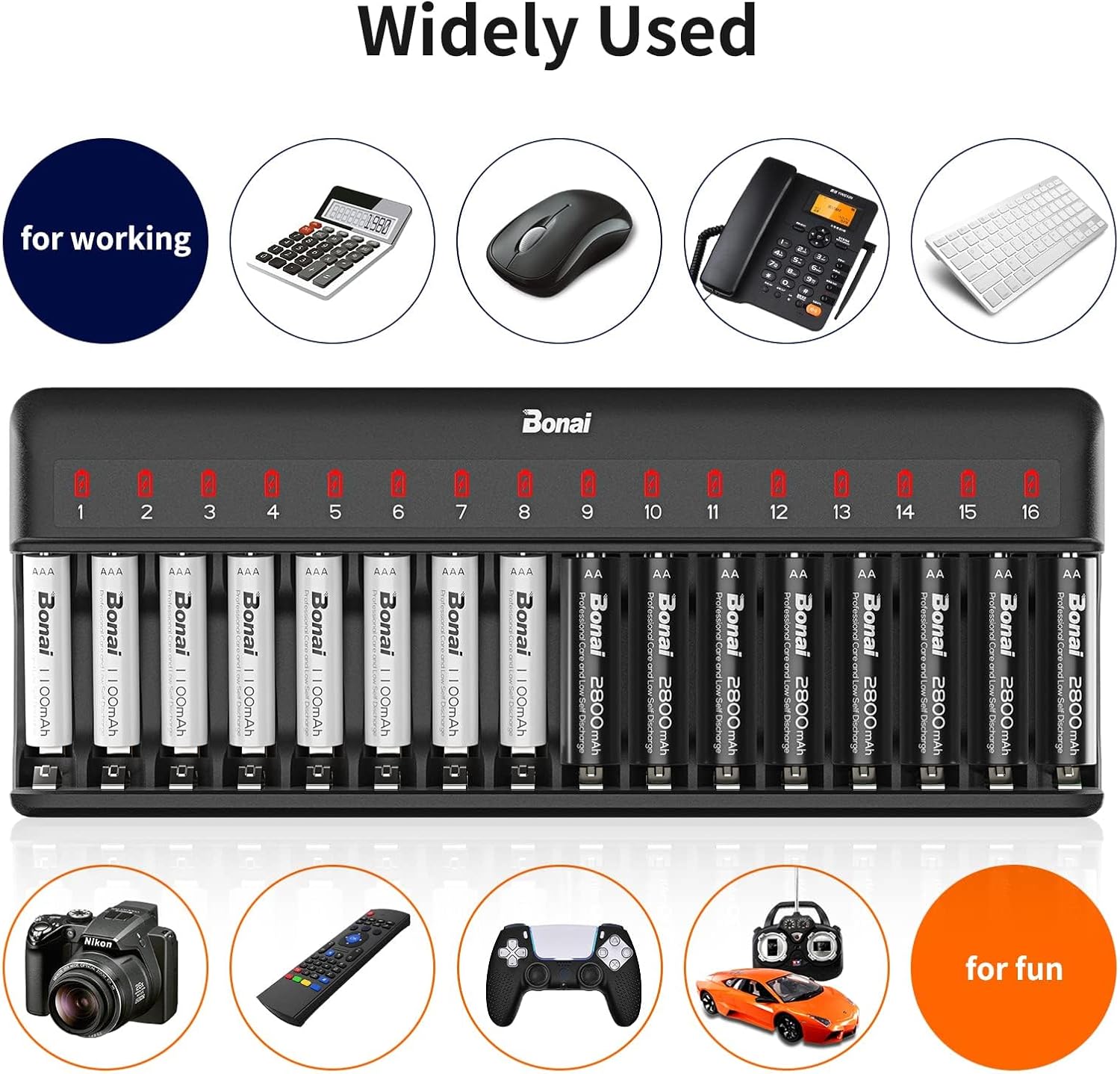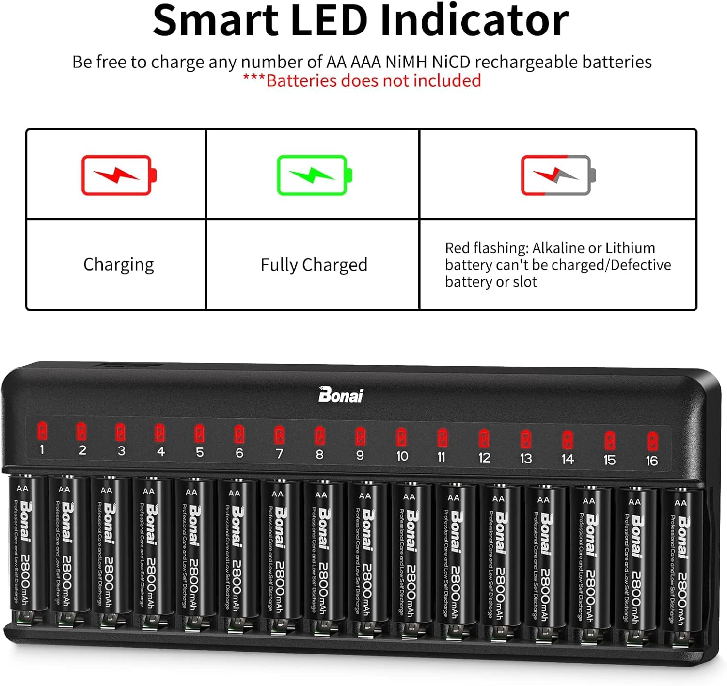 16-slot batterij oplader voor AA AAA C D Ni-MH Ni-CD en onafhankelijk opladen