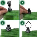 - Eenvoudige installatie: uitgerust met een eenvoudig sluitmechanisme maken deze klemmen een snelle en probleemloze installatie mogelijk. Perfect voor degenen die op zoek zijn naar een efficiënte en praktische oplossing voor het beveiligen van hun tuinmaterialen.