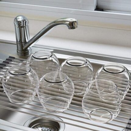 Het oprolbare ontwerp bespaart veel ruimte en is makkelijk op te bergen, daarnaast valt al het afdruipende water direct in de gootsteen.
