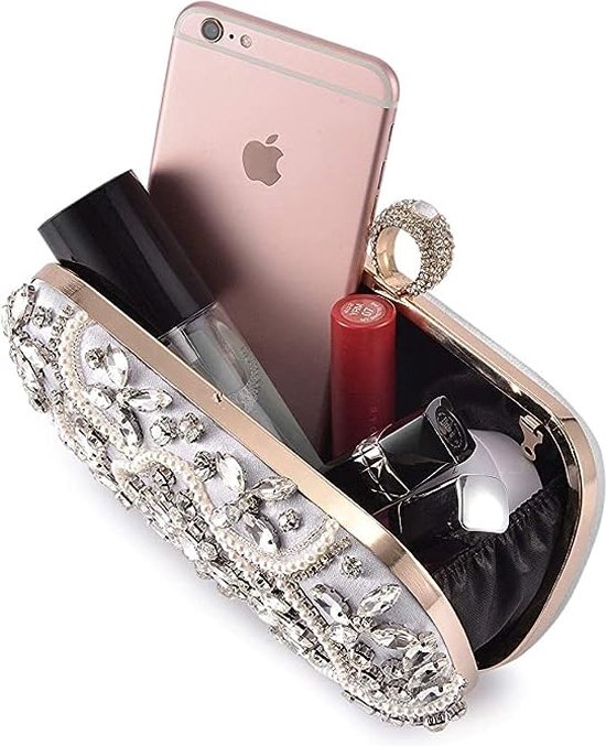 - ➤[Premium materiaal] — Deze avondtas is gemaakt van hoogwaardige heldere strass, die zeer verblindend is als een diamant of edelsteen, geen onvolkomenheden. K vergulde hardware die zorgvuldig werd geselecteerd, geen krassen, geen roest op het oppervlak. Hoogwaardige satijnen voering. Duurzame strass gesp sluiting aan de bovenkant, gemakkelijk te openen en te sluiten terwijl het toevoegen van de veiligheid van de spullen binnen.