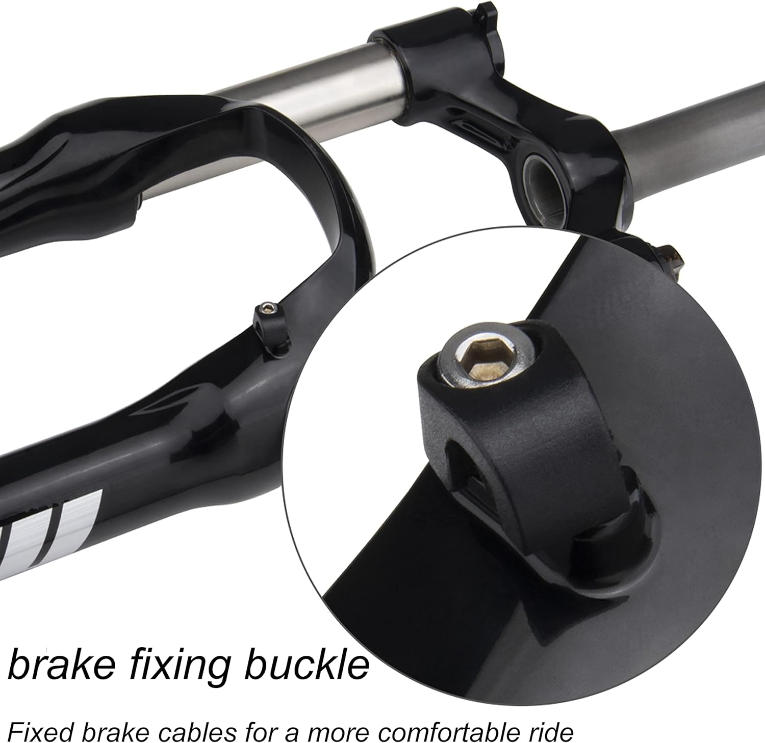 - 【Materiaal】: Mountainbike-veringvork, gemaakt van hoogwaardige aluminiumlegering + magnesiumlegering, sterk en duurzaam, zorgt voor stabiele controle over je fiets en biedt bescherming tijdens het fietsen in de buitenlucht.