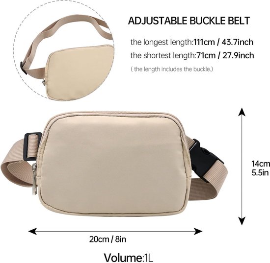 - Verstelbare riemtas: de verstelbare nylon tailleriem kan worden aangepast aan een minimale lengte van 70 cm en een maximale lengte van 111 cm (inclusief tas). Hij is geschikt voor vrouwen, mannen, tieners of grote kinderen en kan afhankelijk van de tailleomvang van de drager vrij worden ingesteld. Ook op meerdere manieren te dragen, kun je hem op je taille, als riemtas, dwars over het lichaam als crossbody tas.