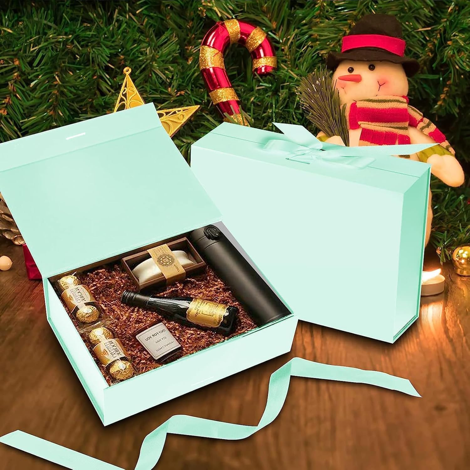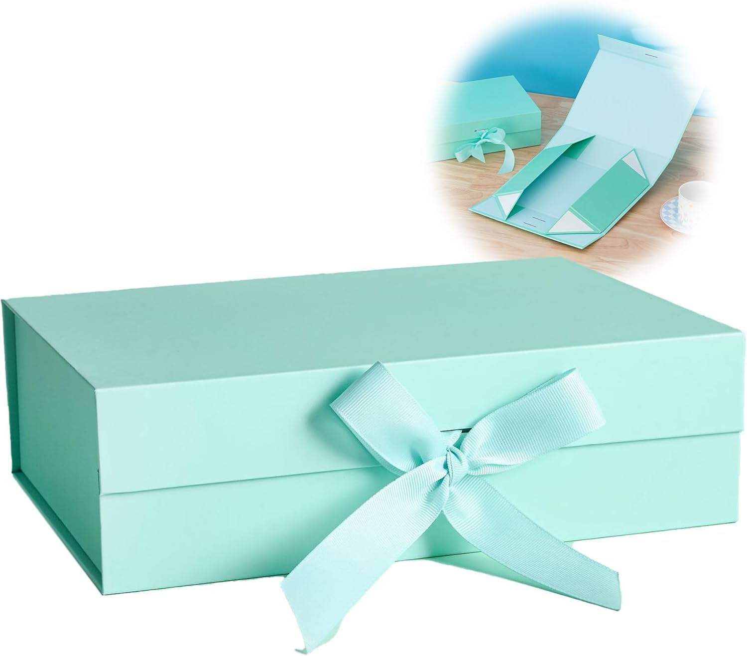 Cadeaudoos – GEWELDIGE SET – DOOS + TASSE – TIFFANY BLAUW – 26*19*8 CM – 32*11.5*28 CM – Gelamineerd Karton – mit LINT – Vouwdoos – Verpakking