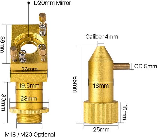 - Gebruikt voor spiegeldiameter: 20 mm, lensdiameter: 20 mm, brandpuntsafstand van de lens: 50,8 mm