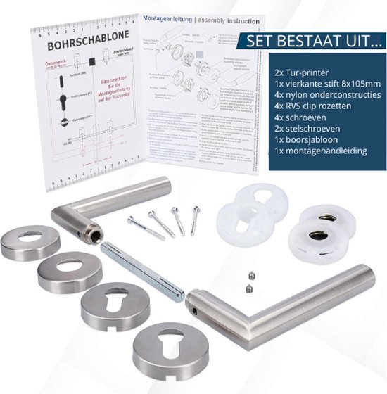 - Compleet met Accessoires: Deze deurklink wordt geleverd met alle benodigde accessoires en een handige boorsjabloon voor een eenvoudige installatie.