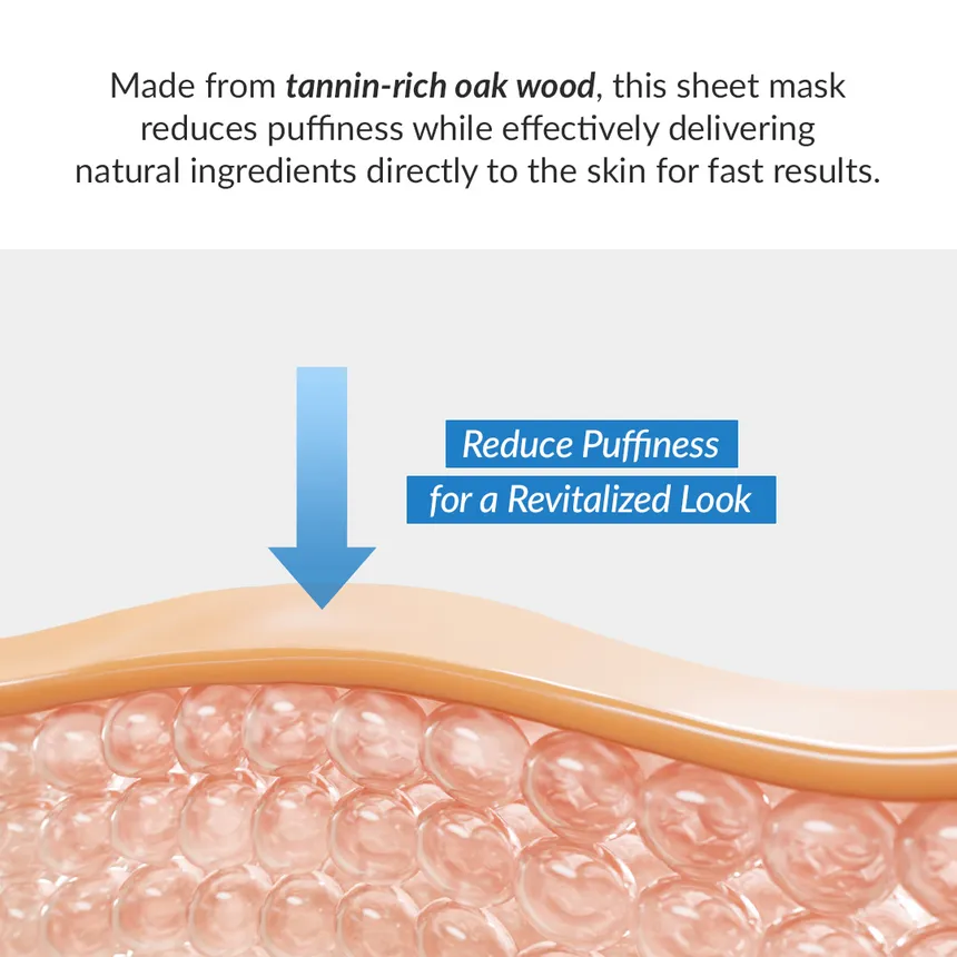 Het masker is gemaakt van tanninerijk eikenhout, wat helpt om zwellingen in het gezicht te verminderen en een grondige opname van voedingsstoffen in de huid mogelijk maakt.
