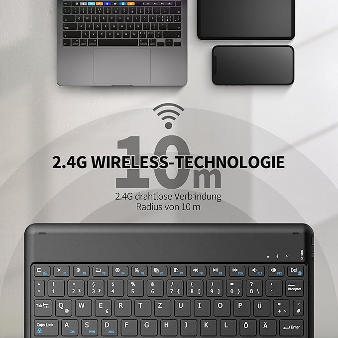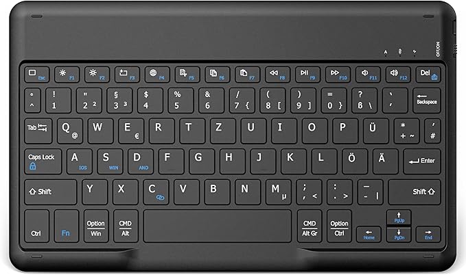 EasyAcc Duits Bluetooth-toetsenbord voor iPad Air/iPad Pro/iPad 10/10.2/9.7/iPhone/Samsung/Android, oplaadbaar, QWERTZ, draagbaar, draadloos, ultradun, zwart