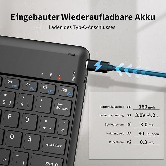 - Bluetooth toetsenbord – draadloos toetsenbord met een betrouwbare Bluetooth-overdracht tot 10 m afstand tot het apparaat