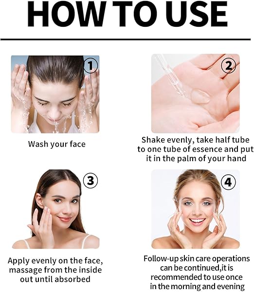 • Gebruiksvriendelijk: 1. Was en droog je gezicht. 2. Verdeel 2-3 druppels over de palm van je schone hand en masseer met je vingertoppen je gezicht en hals totdat het volledig is opgenomen. 3. Breng vervolgens je favoriete moisturizer aan. Herhaal dit ’s ochtends en ’s avonds.