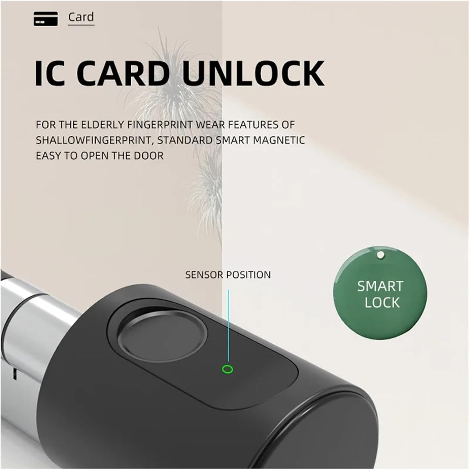 - Het vinrafdrukdeurslot heeft een inbouwde 360° biometrische vinrafdruksensor, die een snelle vinrafdrukherkenningssnelheid en ho nauwkeurigheid heeft. IC-kaart ontgrendelen
