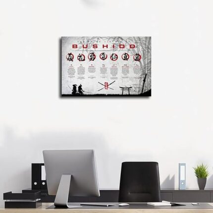 Japanse zeven deugden van Bushido, canvas poster, wanddecoratie, print, schilderij voor woonkamer en slaapkamer, ingelijst, 60 x 90 cm
