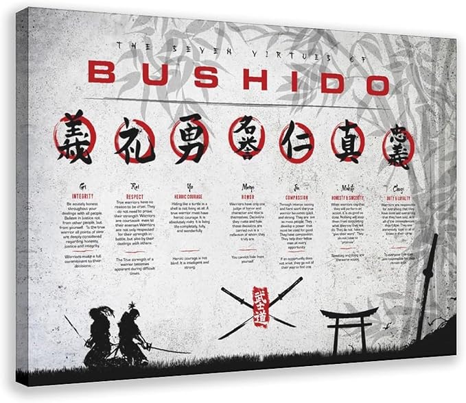 - Japanse zeven deugden van Bushido, canvas poster, wanddecoratie, print, schilderij voor woonkamer en slaapkamer, ingelijst, 60 x 90 cm