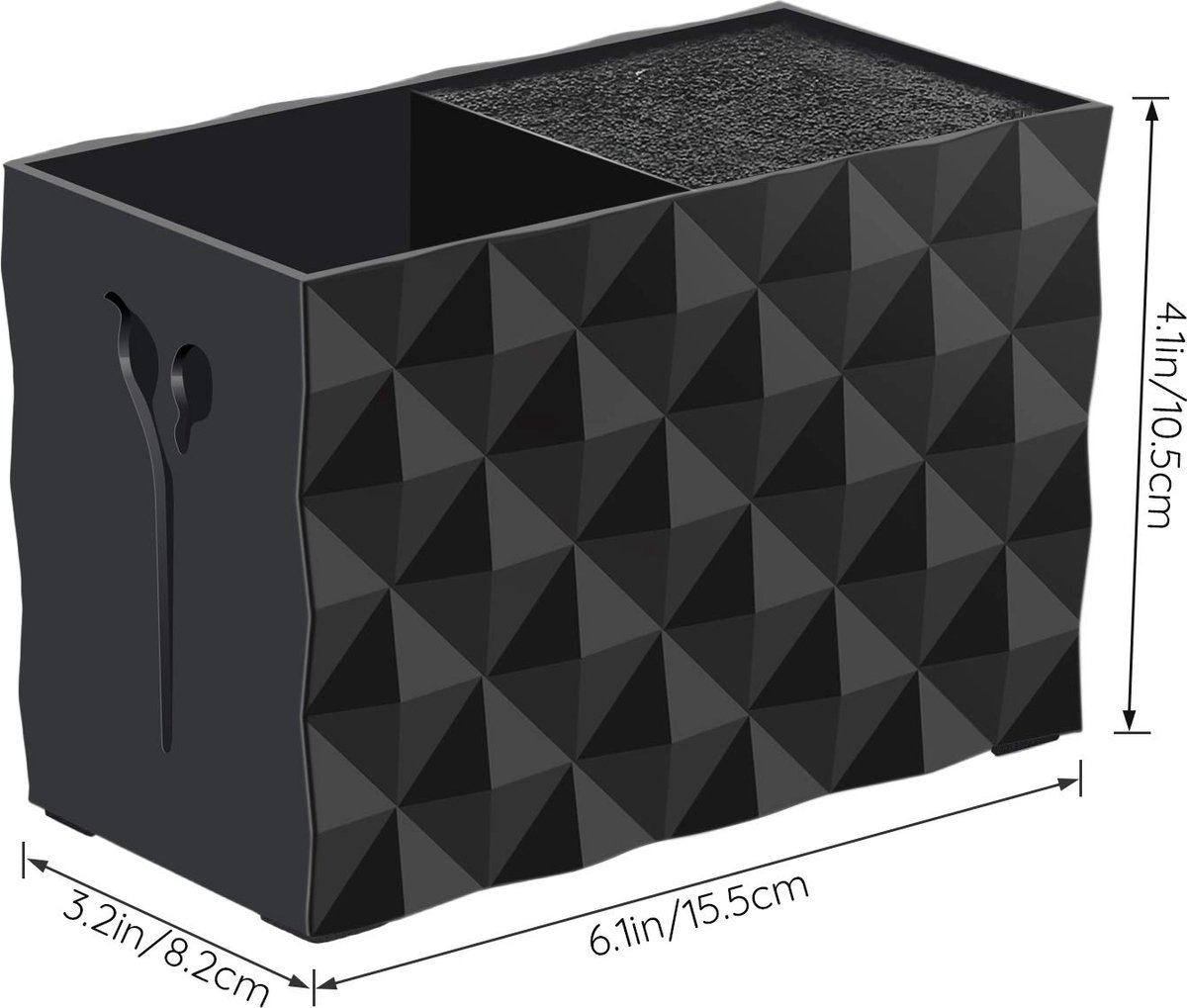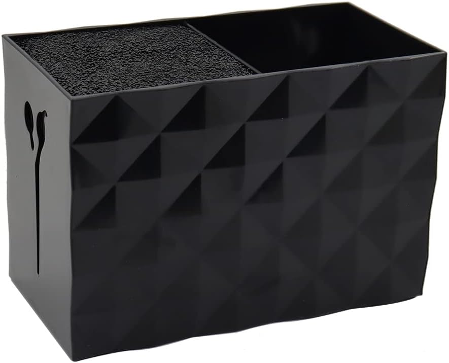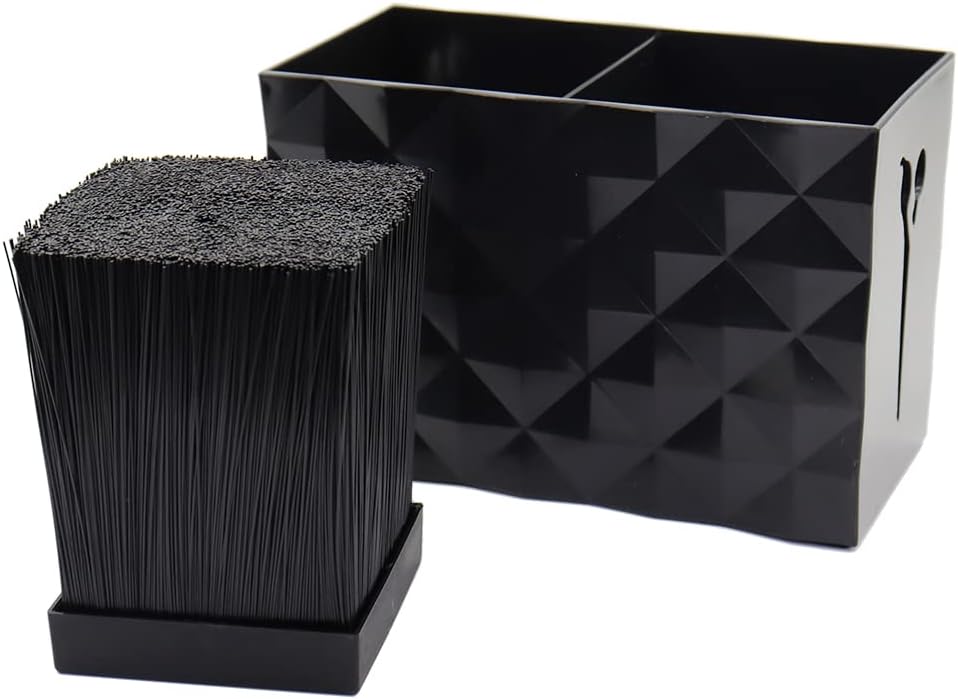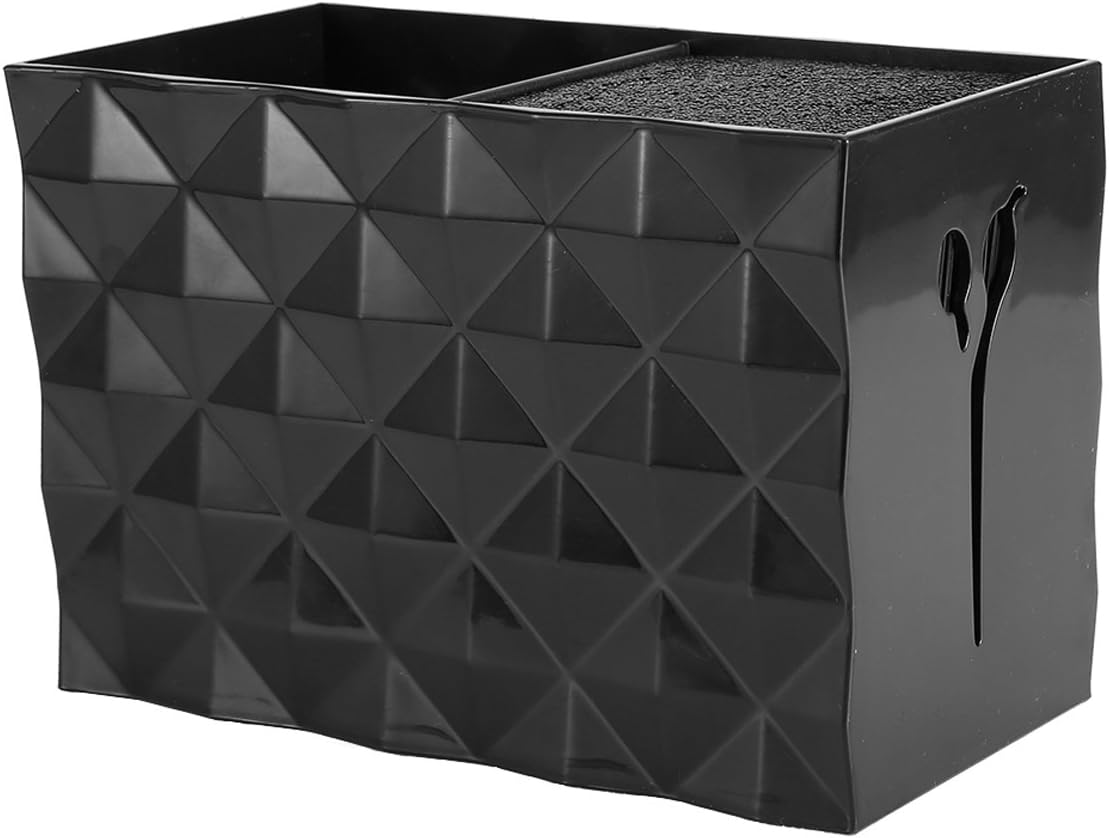 Houdt alles netjes en bij de hand: Inclusief 2 compartimenten met een verwijderbaar vezelinzetstuk om de schaar op zijn plaats te houden. Compact en toch efficiënt genoeg om meerdere scharen, haarverfborstels, clips en een aantal andere gereedschappen in de opbergdoos op te bergen. Robuuste en antislipconstructie: antislip rubberen pads aan de onderkant zorgen voor een veilige stand op elk vlak oppervlak. Gemakkelijk schoon te maken: het uitneembare vezelinzetstuk is gemakkelijk te verwijderen en gemakkelijk schoon te maken. Met de föhn blaas je stof en haren weg. Professionele en stijlvolle uitstraling: de klassieke en elegante ruitvormige textuur en de briljante zwarte kleur geven uw werkplek een professionele uitstraling. Ideaal voor zowel salon- als thuisgebruik: niet alleen voor kappers, nagelkunstenaars en dierenverzorgers, het is ook geweldig om gereedschap op te bergen. Je kunt het ook gebruiken voor je kammen, scheermessen en pincetten in het badkamerrek.