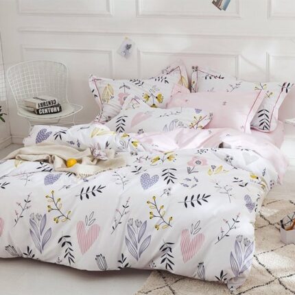 - Omkeerbaar design: het witte beddengoed heeft een schattige kawaii-bloem, paars en roze, liefde, cartoonmotief met groen bladpatroon, vol speelsheid. De andere kant van het dekbed is roze met kleine bloemen en frisse kleuren. Het beste cadeau als esthetische kamerdecoratie voor alle kleine prinsessen, grote meisjes en volwassenen.