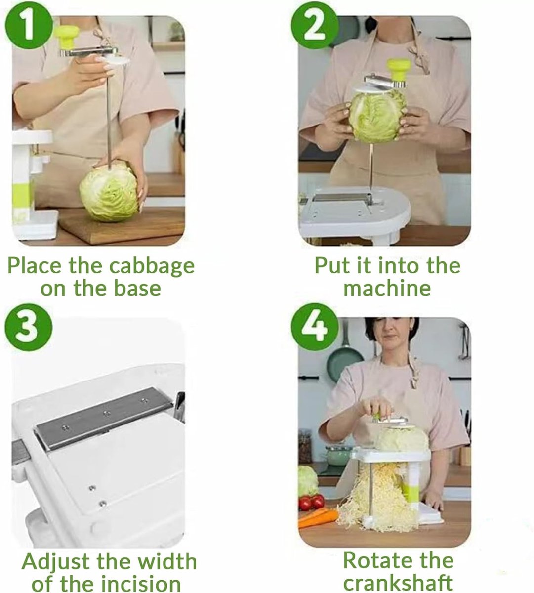 Eenvoudige bedieningsstappen: Plaats de kool gewoon op de basis, steek hem in de machine, pas de incisiebreedte aan en draai de krukas. Geniet met minimale inspanning van perfect geraspte kool, ideaal voor salades, koolsalade en meer.