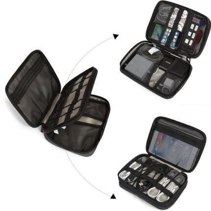 Elektronica tas dubbellaagse voor op reis voor kabels oplader adapter powerbank iPad Mini 79 inch tablet USB-sticks SD-kaarten zwart Eén maat Kabel organiser