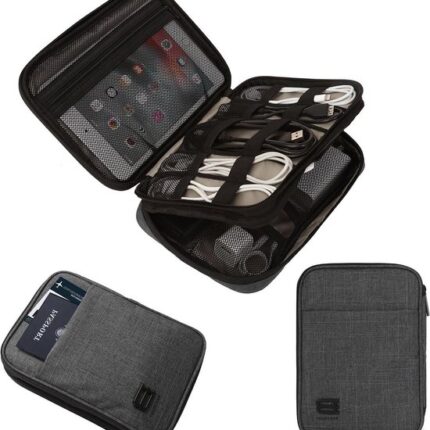 Elektronica-organizer voor kabels en accessoires - Orde en bescherming voor onderwegBeschrijving: Houd al je elektronische accessoires georganiseerd en beschermd met deze handige elektronica-organizer. De diverse elastieken en vakken zorgen voor een opgeruimde indeling van kabels, opladers, harde schijven en meer. Het duurzame en waterafstotende materiaal beschermt je spullen tegen stof en vocht. Ideaal voor op reis, op het werk of gewoon thuis. Bespaar tijd en voorkom chaos met deze handige reisgenoot. Met handige draaglus voor eenvoudig transport. Maak vanaf nu een einde aan de wirwar van kabels en accessoires!