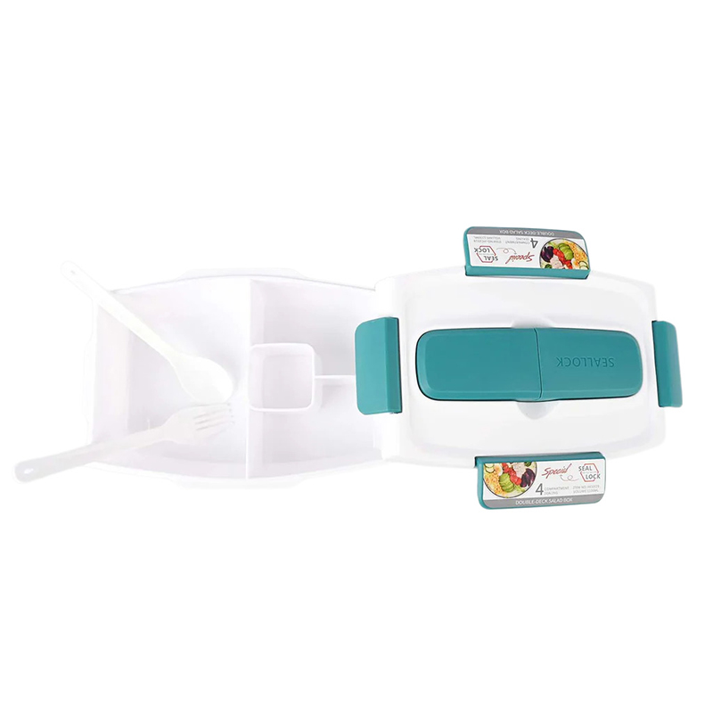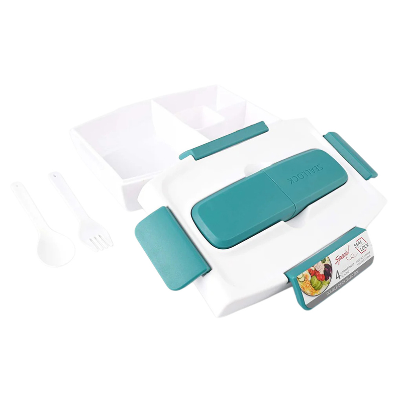 Pak alles wat je nodig hebt voor een heerlijke maaltijd in deze BPA-vrije food to go-BOX. Hij wordt geleverd met een bestekkoffer met daarin een eigen stevige vork en mes. Het deksel klikt vast zodat het op zijn plaats blijft. Neem elke maaltijd mee die je wilt opwarmen, want de onderste container is magnetronbestendig.