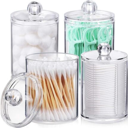 Wattenschijfjeshouder, 4 stuks wattenstaafjeshouder, acryl organizer, badkamer jerrycan opslag, wattenstaafjes opslag, wattenschijfdispenser voor cosmetica, wattenballen, wattenstaafjes.