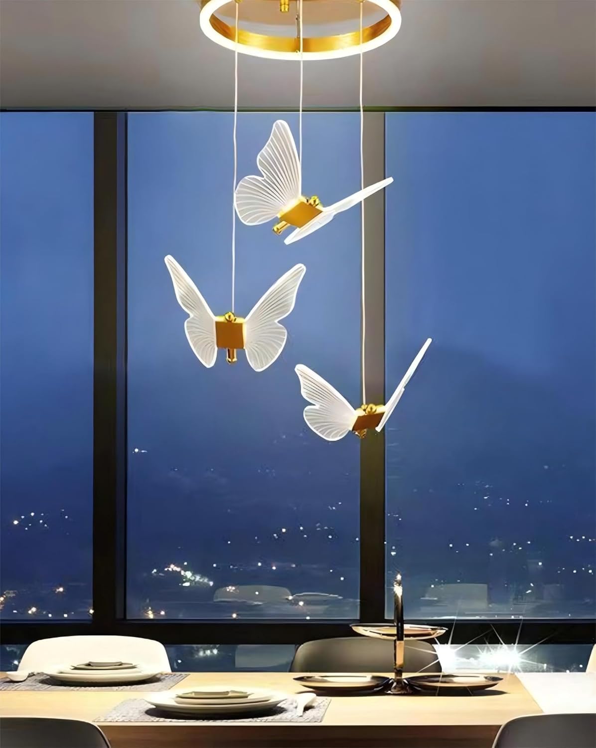 Home » Shop » Moderne Aluminium LED Kroonluchter Vlinder Vorm Hanglamp Hoog Plafond Dimbare Hoogte Verstelbaar Woonkamer Villa Verlichting