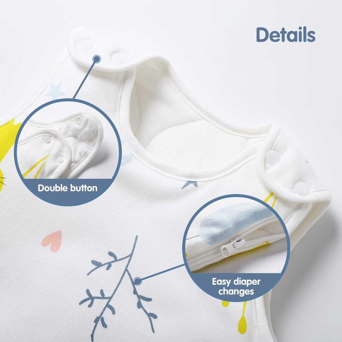 - 【Hoogwaardig katoen, goede warmte】 Warm gevoerde winter slaapzak zonder mouwen van hoogwaardig katoen, zorgt voor een veilige en gezonde slaap op constante temperatuur voor uw kind.