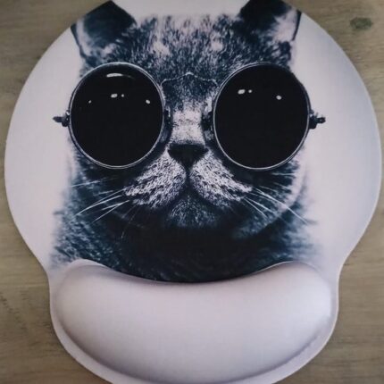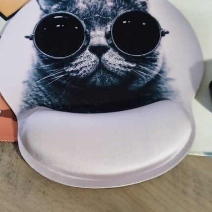 Muismat met polssteun, ergonomische polssteun van traagschuim, antislip rubberen basis voor computer en kantoor 25×23 kat met bril