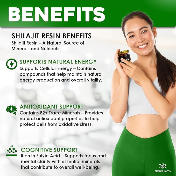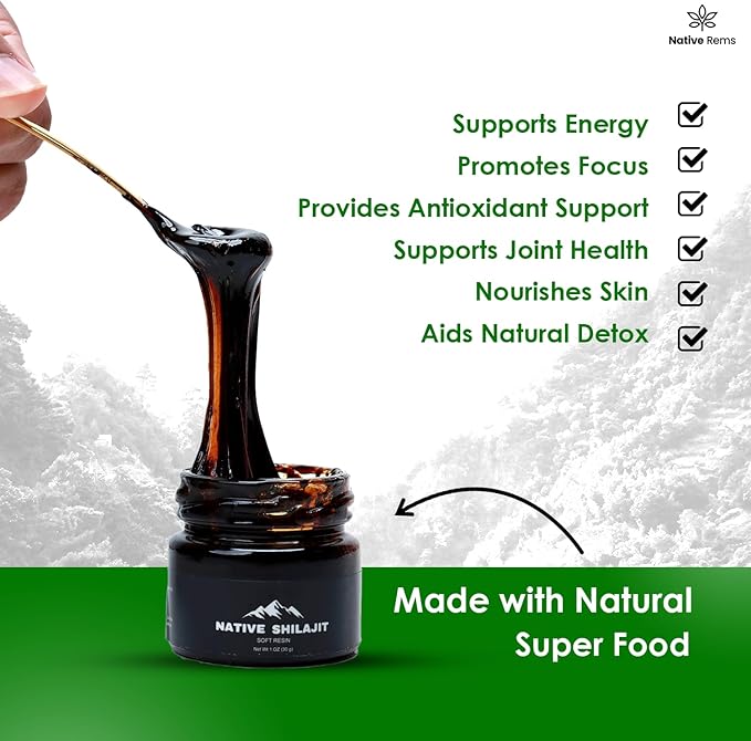Ontdek het eeuwenoude geheim van natuurlijke vitaliteit met Native Rems Himalaya Shilajit Resin – jouw volledig natuurlijke ondersteuning voor dagelijks welzijn. Onze hoogwaardige shilajit hars, afkomstig uit de ongerepte Himalaya, is een krachtig adaptogeen boordevol essentiële mineralen en voedingsstoffen. Dit natuurlijke supplement is ontworpen voor mannen en vrouwen die hun algehele welzijn willen ondersteunen en is perfect voor iedereen die een evenwichtige, holistische levensstijl nastreeft. Ervaar langdurige vitaliteit met deze biologische, GMO-vrije, suikervrije en veganistische superfood. Onze shilajit hars is in het laboratorium getest op zuiverheid en biedt een schone en effectieve manier om je natuurlijke energieniveau en dagelijkse prestaties te ondersteunen. Of je nu op zoek bent naar een dagelijkse boost voor je welzijn, meer uithoudingsvermogen of een scherpere focus, Native Rems Himalaya Shilajit Resin is er om je gezondheidsreis aan te vullen. Shilajit wordt al eeuwenlang traditioneel gebruikt in de Ayurvedische wellnesspraktijk en gewaardeerd als een natuurlijke manier om uithoudingsvermogen en vitaliteit te behouden. Nu kun je genieten van de veelzijdige voordelen in een gebruiksvriendelijke, hoogwaardige hars. Omarm de kracht van de Himalaya en stap in een wereld van natuurlijk evenwicht en welzijn met Native Rems Himalayan Shilajit Resin.