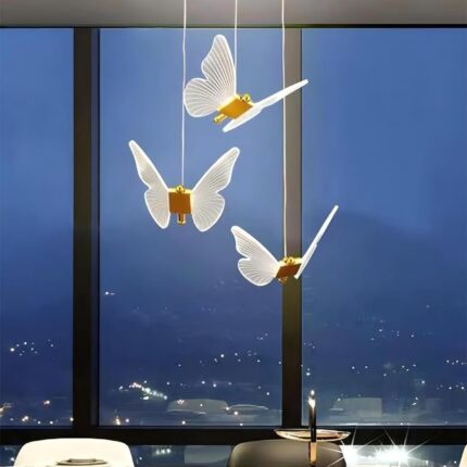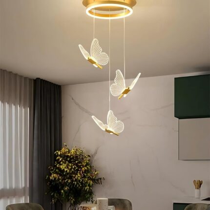 Deze moderne, artistieke LED kroonluchter met vlindervormig design in goudkleur geeft een unieke uitstraling aan uw interieur. Geschikt voor hoge plafonds, woonkamers, villa's, slaapkamers en hallen. De lamp is gemaakt van duurzaam aluminium en acryl en beschikt over een instelbare kabel tot 120 cm, waardoor u de hoogte eenvoudig kunt aanpassen voor de perfecte balans. Kies uit warm licht, wit licht of een dimbare variant (inclusief afstandsbediening). Met een hoge kleurweergave-index (90+) en energieklasse A++ zorgt deze lamp voor heldere en efficiënte verlichting. Beschikbaar in 9 koppen (15-20m²) en 13 koppen (20-30m²). Lange levensduur van gemiddeld 60.000 uur. Spanning: 110-240V (wereldwijd). Het pakket bevat de hanglamp, installatieaccessoires en een handleiding. Professionele installatie door een erkende elektricien wordt aanbevolen. Gebruik de lamp in droge omgevingen om de levensduur te maximaliseren.