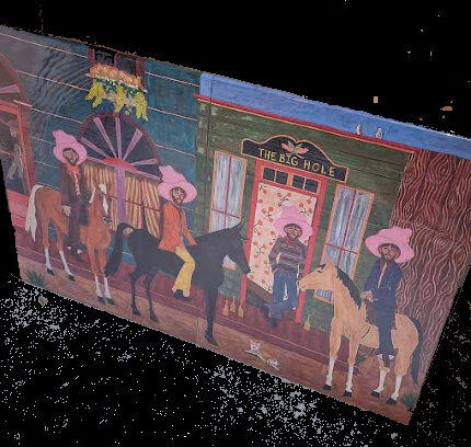 - Kenmerken: Het toont cowboys te paard voor een gebouw met het opschrift "The Big Hole", wat de titel was van een van zijn solo-exposities bij de PIERMARQ* galerie in Sydney.