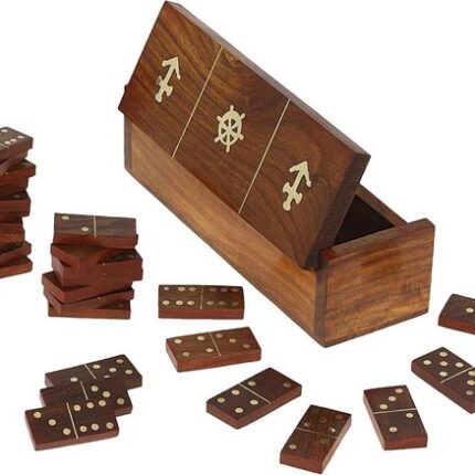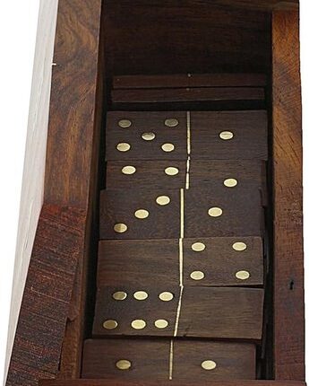 Handgemaakte Domino Game Set – Houten Decoratieve Opbergdoos Met Messing Inlay – Grootte 7.75x2x2 Inch