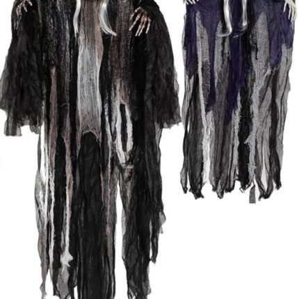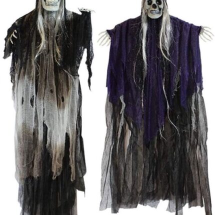 - Deze Magere Heinen zien er eng uit met hun wapperende gewaden en griezelige schedels, wit haar en handen. Met deze geweldige halloween-rekwisieten kun je al je vrienden verrassen.