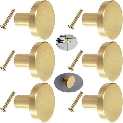 Meubelknop goud, kastknoppen, messing handgrepen voor de winkel rond, 28 mm hardware massief messing ronde kleine gaatjes kleine handgreep, voor kastdeuren en ladekasten, met schroeven (6 stuks)