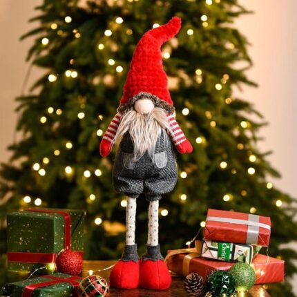 Valery Madelyn Kerstdecoraties met kabouters, vilten beeldje, rode en witte nodische kabouterornamenten, decoraties voor op de schoorsteenmantel, rode en grijze staande decoraties 61 cm.
