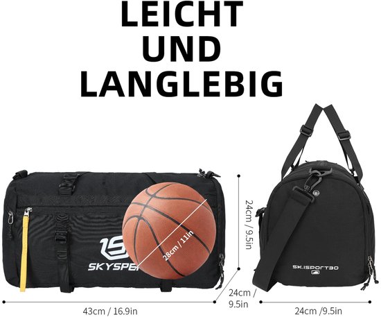 De ISPORT 30 tas van SKYSPER is een sporttas waarin u schoenen, kleding, sportuitrusting en andere dagelijkse benodigdheden kunt opbergen. Een natte tas die groot genoeg is voor sweatshirts, badpakken, brillen, toiletartikelen, handdoeken en andere natte of vuile kleding; Het is de beste metgezel voor op reis of bij het beoefenen van verschillende sporten.