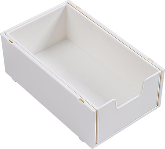 stapelbare opbergbox voor gebruiksvoorwerpen: desktop-organizer, opbergsysteem met verschuifbare ladebox, stabiel, stapelbaar en flexibel combineerbaar, perfecte opbergoplossing en opberghulp op kantoor of thuis.