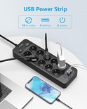 10-voudige stekkerdoos met 4 USB-oplaadpoorten – voor wandmontage – 3680 W – 5 V 3.1 A 155 W – 2 m kabel – zwart