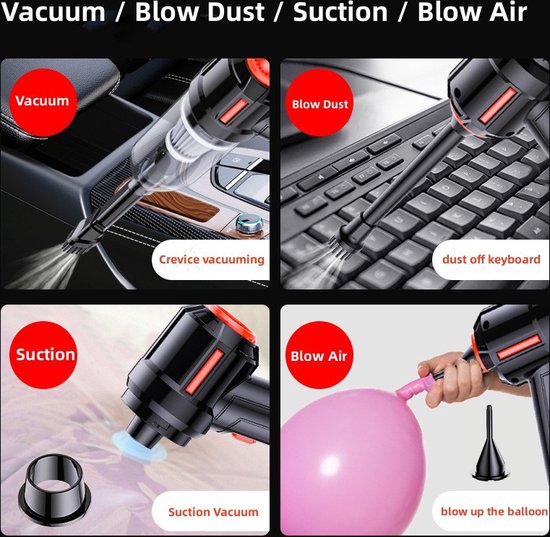 Draadloze krachtige stofzuiger, drie gebruiksmodi (afstoffen/blazen/zuigen)