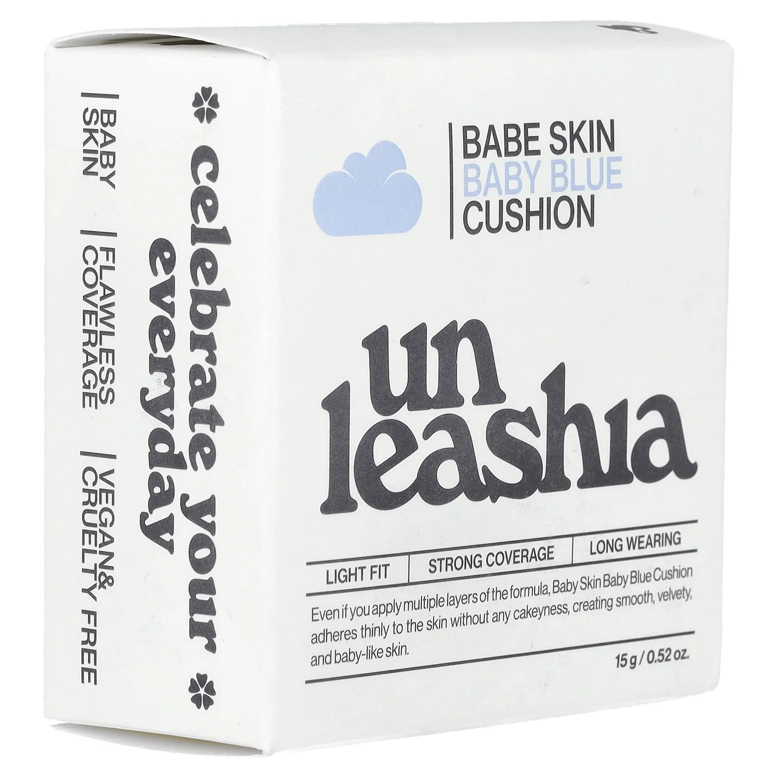 De Unleashia Babe Skin Baby Blue Cushion RE-FEEL is een veganistische cushion foundation met een hoge dekking die zorgt voor een lichtgewicht, semi-matte finish met SPF40 PA++ zonbescherming. Verkrijgbaar in veelzijdige tinten, corrigeert de huidtint met een natuurlijke glans…