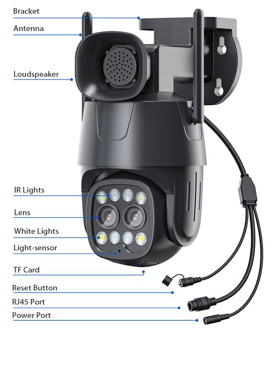 Producteigenschappen: Hoge gevoeligheid, hoge signaal-naar-ruis CMOS-beeldsensor Ondersteuning dual Sensor, via de APP kan worden geschakeld tussen de tweeSensoren Ondersteunt automatisch schakelen tussen de twee sensoren op basis van de afstand van de persoon tot de camera na het openen van de menselijke volgfunctie Sensor A gebruikt 8mm lens en Sensor B gebruikt 3.6mm lens H.265 compressie algoritme, effectiefverminderen netwerkbandbreedte, ondersteuning dual stream, ondersteuning van mobiele telefoon monitoring Ondersteuning van meerdere netwerkprotocollen: TCP / IP, HTTP, TCP, ICMP, UDP, ARP, IGMP, SMTP, FTP, DHCP, DNS, DDNS, NTP, UPNP, RTSP, enz. Ondersteuning ONVIF-protocol Ondersteuning van dynamische fabrieksdomeinnaam en dynamische domeinnaamomzetting van derden Ondersteuning voor het verzenden van alarmfoto’s naar e-mail Ondersteuning voor het uploaden van alarmfoto’s en alarmvideo naar FTP-server Ondersteuning voor het vastleggen van foto’s naar FTP-server met regelmatige tussenpozen Ondersteuning van statisch IP, ook ondersteuning voor dynamische IP (DHCP) Ondersteuning IE, Google, Firefox browser Ondersteuning van maximaal 6 gebruikers om tegelijkertijd te bladeren (elke stream ondersteunt 3gebruikers) Zorg voor bewegingsdetectie (gebied, gevoeligheid kan worden ingesteld) alarmfunctie Ondersteuning Micro SD-kaart functie, de maximale ondersteuning128G Micro SD-kaart Ondersteuning pc-client om SD-kaart video te downloaden Ondersteuning mobiele telefoon downloaden en afspelen SD-kaart video.